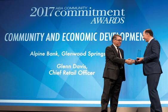 The American Bankers Association recognized Alpine Bank for the bank’s Community Solar program which donates bank-purchased solar panels to a local nonprofit to help low-income families.